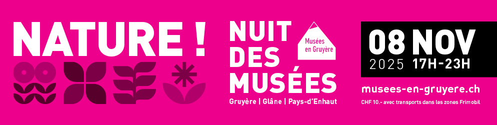 Am Samstag, 8. November 2025, öffnen die Museen in La Gruyère, dem Glanebezirk und dem Pays d’Enhaut ihre Türen für die Nacht der Museen. Von 17:00 bis 23:00 Uhr laden Sie 11 Museen ein, ihre verborgenen Schätze zu entdecken. Ein Abend voller Überraschungen und Animationen steht auf dem Programm. Nutzen Sie öffentlichen Verkehrsmittel, um zu den verschiedenen Museen zu fahren.