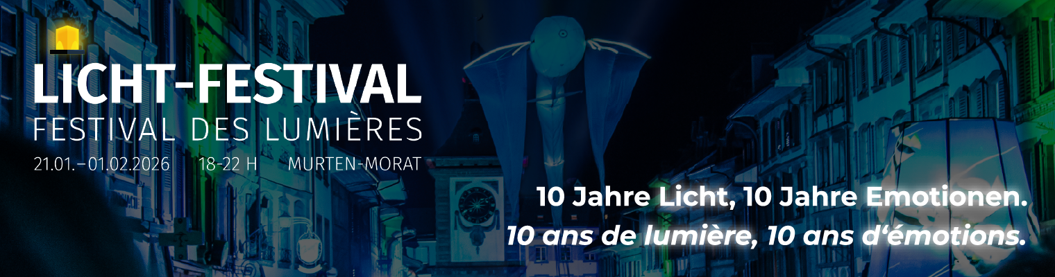 Durant le festival, les rues, les monuments et les remparts de Morat sont sublimés par des jeux de lumières. Ne manquez pas d'admirer les artistes qui exposent leurs Arteplages dans différents endroits de la Vieille-Ville ainsi qu'une spectaculaire projection avec show laser sur la façade de l'école primaire. Les lanternes illumineront le lac. Pensez à faire un voeux avant de la déposer sur le lac. Entrée : Prévente CHF 8.- (dès 16 ans), entrée CHF 12.- Plus d'infos sur : festivaldeslumieres.ch
