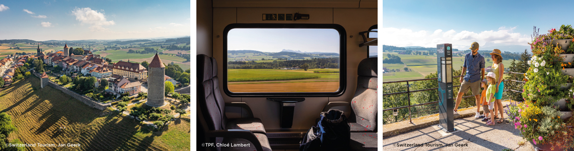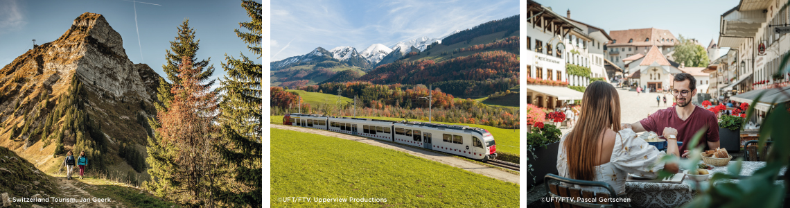 Rejoignez la Gruyère facilement en transports publics depuis Berne, Fribourg, Romont et le Pays-d’Enhaut: