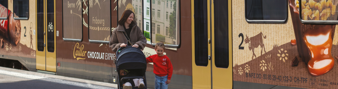 Chocolat Express jusqu’à la Maison Cailler (Broc-Chocolaterie), sans changement, au départ de Berne ou Fribourg.